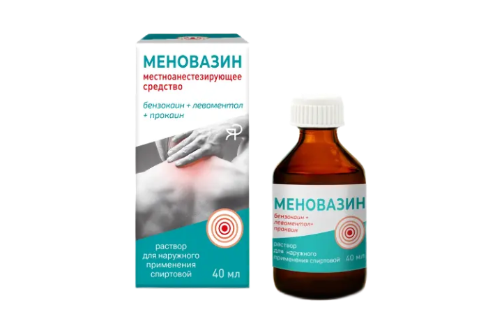 Действующие вещества: Левоментол (L - ментол) - 2,5 г, Прокаина гидрохлорид (Новокаина гидрохлорид) - 1,0 г, Бензокаин (Анестезин) - 1,0 г. Вспомогательное вещество: Спирт этиловый (этанол) 70 % - до 100 мл.
