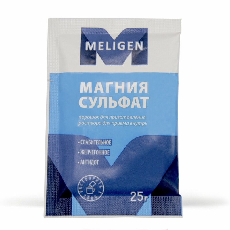 На 1 пакет: Действующее вещество: магния сульфата гептагидрат 25 г.