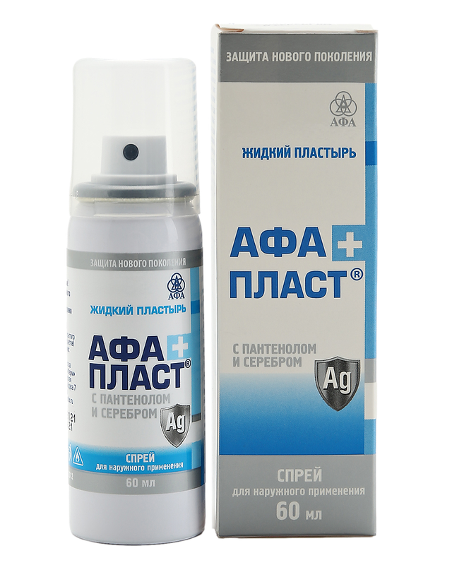 Жидкий пластырь предназначен для обработки ссадин, ожогов и поверхностных ран. Средство обладает повышенным антибактериальным и регенерирующим эффектом. Быстро высыхает, и уже спустя 3-5 минут можно продолжать работу, тренировку, игру. Средство легко наносится на ссадины и раны, позволяет избежать прикосновения руками и не причиняет боль. Спрей создает защитную пленку в любых труднодоступных местах, при этом не отклеивается, как традиционный пластырь. Эластичная прочная пленка надежно защищает раневую поверхность от загрязнений и бактерий даже при высоких нагрузках (тренировки, тяжелая физическая деятельность) — достаточно нанести средство в несколько слоев для закрепления. Прозрачный пластырь практически незаметен и не привлекает внимания. Полимерная основа продукта придает эластичность — пленка не стягивает кожу, не препятствует движениям и удобно фиксируется на сгибах. Обеспечивает воздухопроницаемость — кожа «дышит» и быстрее восстанавливается. Благодаря ионам серебра в составе, Афапласт оказывает антибактериальное действие. Пантенол ускоряет процесс регенерации кожи, снижает боль, способствует восстановлению эпителия. Ионы коллоидного серебра обеззараживают и дезинфицируют поврежденный кожный покров. Пластырь не нуждается в обязательном удалении — пленка исчезает сама через 2-3 дня.