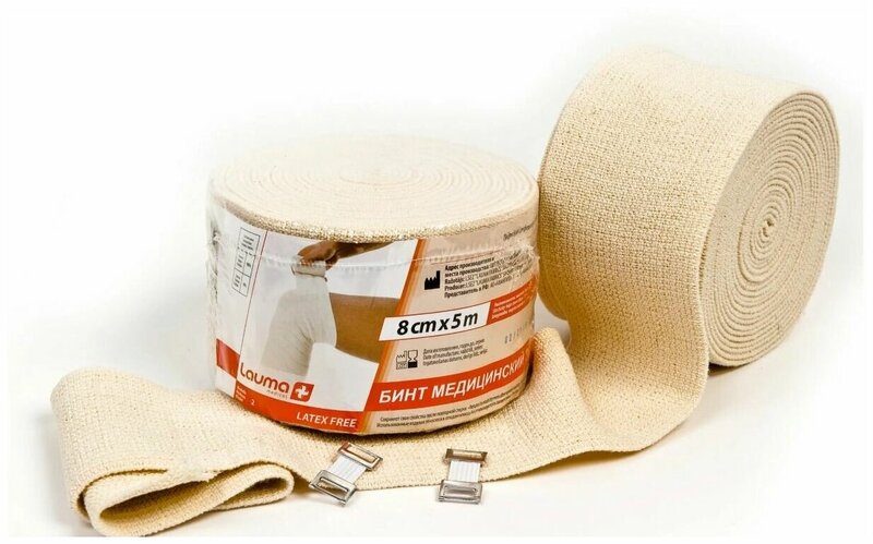 Бинт эластичный Lauma высокой растяжимости с застёжкой 8 см х 5 м