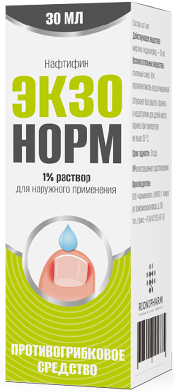 Наружно. При поражении кожи Препарат экзонорм наносят 1 раз в день на пораженную поверхность кожи и прилегающие к ней участки (приблизительно 1 см здорового участка кожи по краям зоны поражения) после их тщательной очистки и высушивания. Длительность терапии при дерматомикозах - 2-4 недели (при необходимости до 8 недель), при кандидозах - 4 недели.При поражении ногтей Препарат ЭКЗОНОРМ наносят 2 раза в день на пораженный ноготь. Перед первым применением препарата максимально удаляют пораженную часть ногтя ножницами или пилкой для ногтей. Длительность терапии при онихомикозах - до 6 месяцев. Для предотвращения рецидива лечение следует продолжить в течение минимум 2 недель после исчезновения клинических симптомов.
