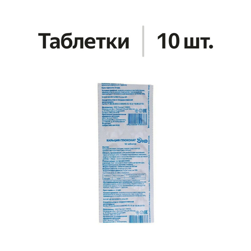 кальция глюконат, крахмал картофельный, кальциевая соль стеариновой кислоты (антислёживающий агент)