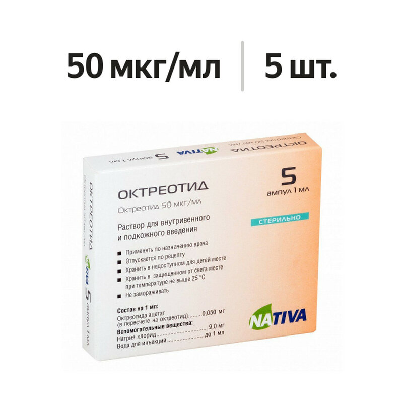 Действующее вещество: Октреотида ацетат (в пересчете на октреотид) 0,050 мг,