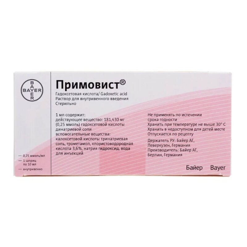 Контрастное диагностическое парамагнитное ионное средство, представляет собой устойчивое хелатное соединение Gd-EOB-DTPA (гадолиний-этоксибензид-диэтилентриамин пентауксусная кислота). Благодаря парамагнитным свойствам обеспечивает усиление контрастности изображения при проведении МРТ и облегчает визуализацию аномальных структур в исследуемых органах и тканях.