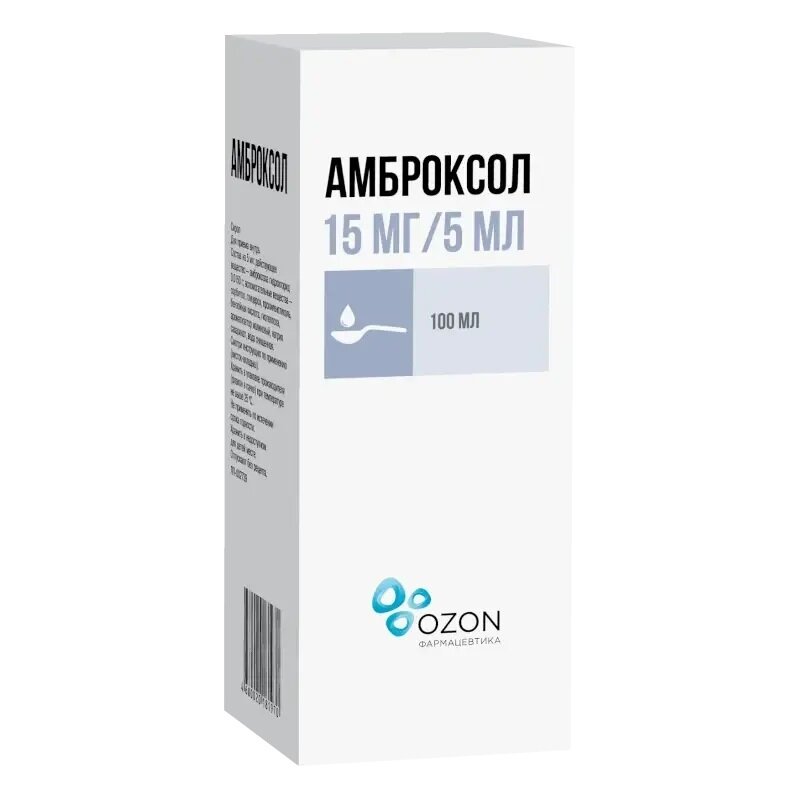 На 5 мл сиропа: амброксола гидрохлорид – 0.015 г. Вспомогательные вещества: сорбитол некристаллизующийся 70 % - 2.5 г, глицерол – 0.75 г, пропиленгликоль 0.15 г, бензойная кислота – 0.01 г, гиэтеллоза – 0.0075 г, ароматизатор малиновый – 0.0025 г, натрия сахаринат – 0.0015 г, вода очищенная - до 5 мл.