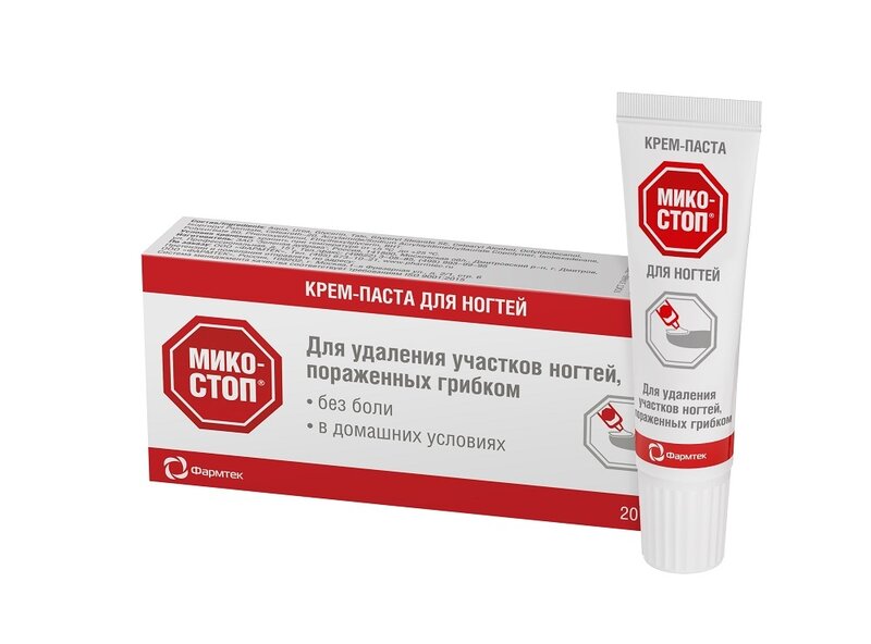 Благодаря 40% мочевине Микостоп крем-паста разрыхляет пораженные грибком ногти, что позволяет удалять их за 2 – 3 применения. Часто позволяет обойтись только местным лечением, позволяет быстро увидеть эффект, ускоряет выздоровление, создает условия для отрастания полноценного ногтя.