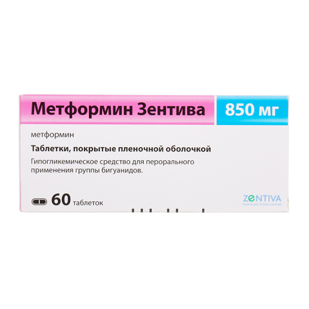 Препарат принимают внутрь. Таблетки следует принимать целиком во время или непосредственно после еды, запивая небольшим количеством жидкости. Препарат Метформин Зентива следует принимать ежедневно, без перерыва. В случае прекращения лечения пациент должен сообщить об этом врачу. Взрослые Монотерапия и комбинированная терапия в сочетании с другими пероральными гипогликемическими средствам Начальная доза, как правило, составляет 500 мг или 850 мг 2-3 раза/сут после или во время приема пищи. Возможно дальнейшее постепенное увеличение дозы в зависимости от концентрации глюкозы в крови. После 10-15 дней применения дозу необходимо скорректировать с учетом результатов измерения концентрации глюкозы в плазме крови. Медленное увеличение дозы может способствовать улучшению переносимости со стороны ЖКТ. Поддерживающая доза обычно составляет 1500-2000 мг/сут. Для уменьшения побочных явлений со стороны ЖКТ суточную дозу следует разделить на 2-3 приема. Максимальная доза составляет 3000 мг/сут, разделенная на 3 приема. Пациенты, принимающие метформин в дозах 2000-3000 мг/сут, могут быть переведены с приема таблеток метформина в дозировке 500 мг на прием таблеток метформина в дозировке 1000 мг. Максимальная рекомендованная доза составляет 3000 мг/сут, разделенная на 3 приема. В случае планирования перехода с приема другого гипогликемического средства: необходимо прекратить прием другого средства и начать прием препарата Метформин Зентива в дозе, указанной выше. Комбинация с инсулином Для достижения лучшего контроля глюкозы в крови метформин и инсулин можно применять в виде комбинированной терапии. Начальная доза препарата Метформин Зентива, как правило, составляет 500 мг или 850 мг 2-3 раза/сут, в то время как дозу инсулина подбирают на основании показателей концентрации глюкозы в крови. Пациенты с нарушением функции почек Метформин можно применять у пациентов с нарушением функции почек умеренной степени тяжести (КК 45-59 мл/мин, СКФ 45-59 мл/мин/1.73 м2 поверхности тела) только при отсутствии других состояний, которые могут увеличивать риск лактат-ацидоза, и при следующих условиях коррекции дозы: начальная доза препарата Метформин Зентива составляет 500 мг или 850 мг 1 раз/сут. Максимальная доза составляет 1000 мг/сут, разделенная на 2 приема. Необходим тщательный мониторинг функции почек (каждые 3-6 месяцев). Если КК<45 мл/мин или СКФ<45 мл/мин/1.73 м2 поверхности тела препарат Метформин Зентива следует немедленно отменить. Пациенты пожилого возраста Вследствие возможного нарушения функции почек дозу препарата Метформин Зентива у пациентов пожилого возраста необходимо подбирать под регулярным контролем показателей функции почек (определять концентрацию креатинина в сыворотке крови не менее 2-4 раз в год). Дети и подростки У детей в возрасте 10 лет и старше препарат Метформин Зентива можно применять как в качестве монотерапии, так и в сочетании с инсулином. Начальная доза, как правило, составляет 500 мг или 850 мг 1 раз/сут после или во время приема пищи. Через 10-15 дней дозу необходимо скорректировать на основании показателей концентрации глюкозы в крови. Максимальная суточная доза составляет 2000 мг, разделенная на 2-3 приема.