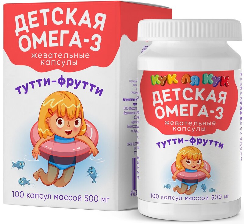 Кук Ля Кук Омега-3 детская жевательные капсулы со вкусом тутти-фрутти 100 шт.