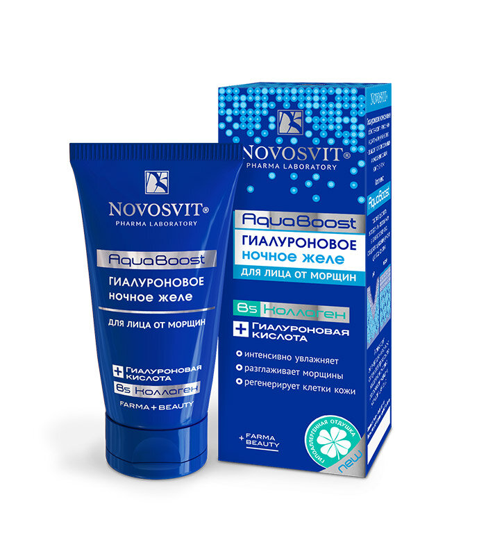 Гиалуроновое ночное желе для лица Novosvit AquaBoost от морщин 50мл обеспечивает интенсивное и длительное увлажнение кожи во время сна, насыщает ее омолаживающими и питательными компонентами, а также интенсивно разглаживает морщины и мимические черточки. Входящий в состав желе комплекс AquaBoost способствует удержанию и сохранению запасов влаги в коже, создавая идеальные условия для ее отдыха. Это средство с освежающей текстурой легко распределяется по коже и быстро впитывается, расслабляя и снимая напряжение. Крем активизирует регенерацию клеток кожи, разглаживает морщины и заметно улучшает цвет лица. Через 4 недели регулярного применения ваша кожа будет выглядеть более упругой, сияющей и увлажненной.