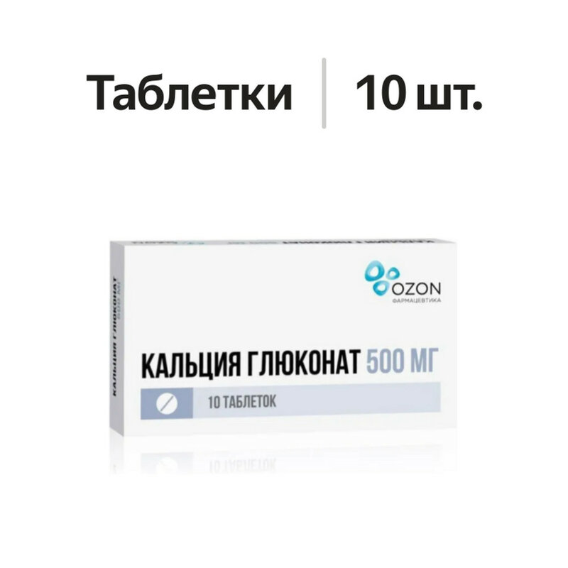 На одну таблетку: Активное вещество: кальция глюконат моногидрат - 500,0 мг Вспомогательные вещества: целлюлоза микрокристаллическая - 72,0 мг, повидон (поливинилпирролидон) - 18,0 мг, кремния диоксид коллоидный - 4,0 мг, магния стеарат - 6,0 мг.