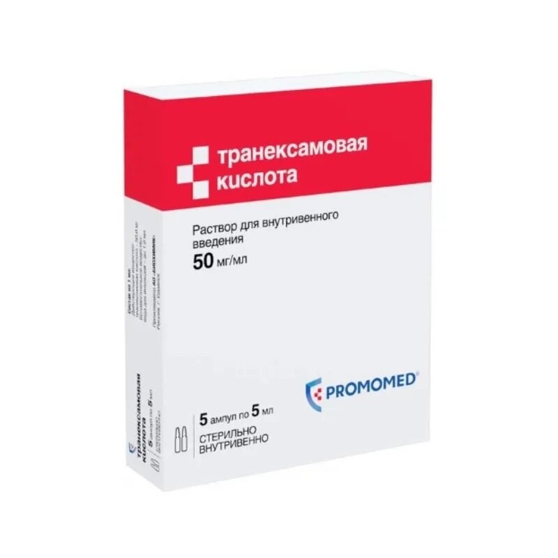 Меноррагии и метроррагии, желудочно-кишечные кровотечения. 500 мг (2 ампулы по 5,0 мл) 2-3 раза в сутки с момента развития кровотечения до его остановки. Лечение кровотечений после хирургических вмешательств на предстательной железе и мочевыводящих путях. 1000 мг (4 ампулы по 5,0 мл) 3 раза в сутки с момента развития кровотечения до его остановки. Профилактика и лечение кровотечений при оперативных вмешательствах в полости носа, рта и глотки. 10-15 мг/кг массы тела каждые 6-8 ч до остановки кровотечения. Профилактика и лечение кровотечений при торакальных, абдоминальных и иных больших оперативных вмешательствах. 15 мг/кг массы тела каждые 6-8 ч до остановки кровотечения. Профилактика и лечение кровотечений при кардиохирургических операциях. Нагрузочная доза 15 мг/кг после индукции анестезии до начала оперативного вмешательства, затем внутривенная инфузия со скоростью 4,5 мг/кг/ч в течение всей операции; рекомендуется ввести транексамовую кислоту в дозе 0,6 мг/кг в аппарат искусственного кровообращения. Лечение акушерско-гинекологических кровотечений (включая кровотечения при гинекологических оперативных вмешательствах). 15 мг/кг массы тела каждые 6-8 ч с момента развития кровотечения до его остановки. Лечение кровотечений, вызванных применением фибринолитических лекарственных средств. 10 мг/кг массы тела каждые 6-8 часов с момента развития кровотечения до его остановки. В случае необходимости длительной (более 48 часов) гемостатической терапии рекомендуется применение препаратов транексамовой кислоты в таблетированной лекарственной форме. Дети старше 1 года Опыт применения препаратов транексамовой кислоты у детей ограничен. Рекомендуемая доза препарата при лечении кровотечений, обусловленных локальным и генерализованным фибринолизом, составляет 20 мг/кг/сутки.