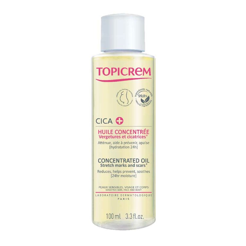 CICA Концентрированное масло смягчает, питает, успокаивает и увлажняет кожу 24 часа, помогает предотвратить появление растяжек, заметно уменьшает выраженность уже существующих растяжек и шрамов*. Масло бережно ухаживает за чувствительной кожей на всех жизненных этапах, улучшает эластичность кожи, устраняет чувство стянутости и зуда. Концентрат маракуйи реструктурирует и ремоделирует кожу, чтобы заметно уменьшить растяжки и шрамы, масло сладкого миндаля смягчает кожу и способствует предупреждению появления растяжек, масло рыжика успокаивает кожу и устраняет чувство дискомфорта и зуда.