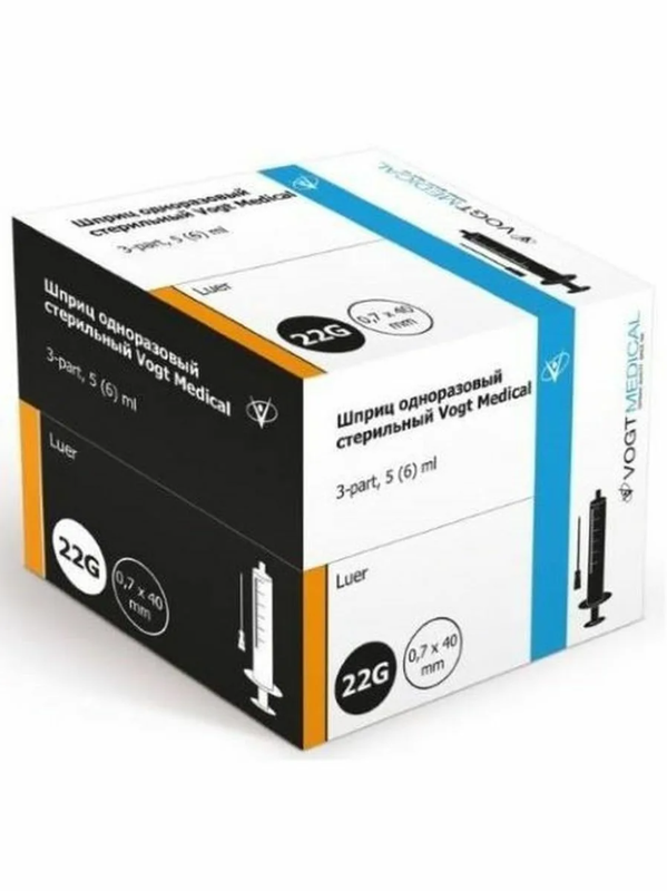 Шприц Vogt Medical 5 мл 3-х компонентный 22G 0.7 х 40 мм 100 шт.