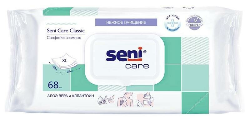 Салфетки влажные Seni Care Classic с алоэ вера и аллантоином 68 шт.