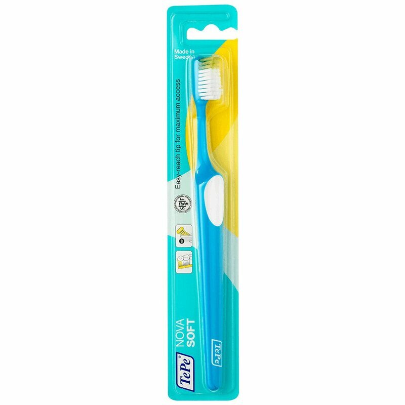 Nova Soft зубная щетка с мягкими щетинками от TePe гарантирует вычищение налета даже из тех участков, которые раньше были недоступны. Головка средства может сгибаться, поэтому с легкостью очищаются дальние части зубов. Данная модель для бережного ухода, так как все щетинки имеют закругление на кончиках.