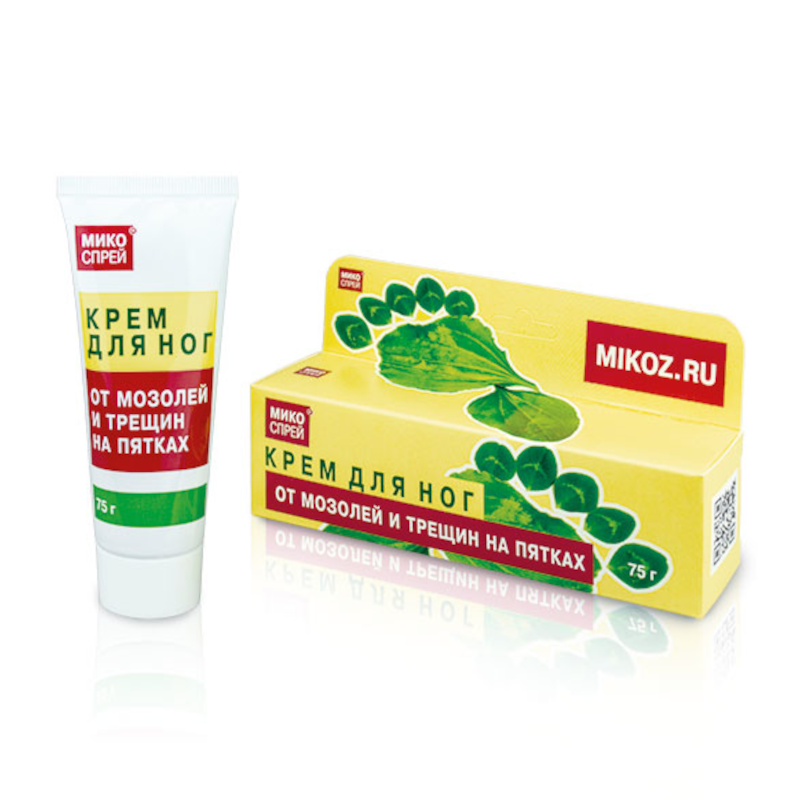 Крем "Микоспрей" разработан специально для ухода за ногами. Благодаря активным веществам в ходящим в его состав, крем борется с мозолями и трещинами на пятках. Внешний вид и свойства: густая однородная масса, без посторонних примесей, белого цвета Фарнезол - обладает смягчающим воздействием на кожу, регулирует секрецию кожного жира. Также фарнезол обладает противовоспалительным и антибактериальным эффектом. Дополнительно фарнезол оказывает дезодорирующее воздействие на кожу ног. Хлоргексидин - сильный антисептик с доказанной эффективностью, применяется для обработки ран, царапин ожогов и других повреждений кожи. В том числе, хлоргекседин применяется для защиты от вредоносных микроорганизмов в общественных местах, таких как сауны, бассейны, пляжи, и другие места возможного контакта кожи с потенциально опасными поверхностями. Хлоргекседин способен предотвращать филаментацию бактерий и микроорганизмов. Мочевина - противоотечный компонент и антигрибковый компонент, широко использующийся в профилактике и лечении микозов, а также при экземах, кератозах и для смягчения мозолей, вплоть до полного их удаления. Экстракт клевера красного (Trifolium pratense) - содержит дубильные вещества, гликозиды и ряд органических кислот, в том числе салициловую. Флавоноид маакиаин, также входящий в состав экстракта, обладает фунгицидными свойствами.