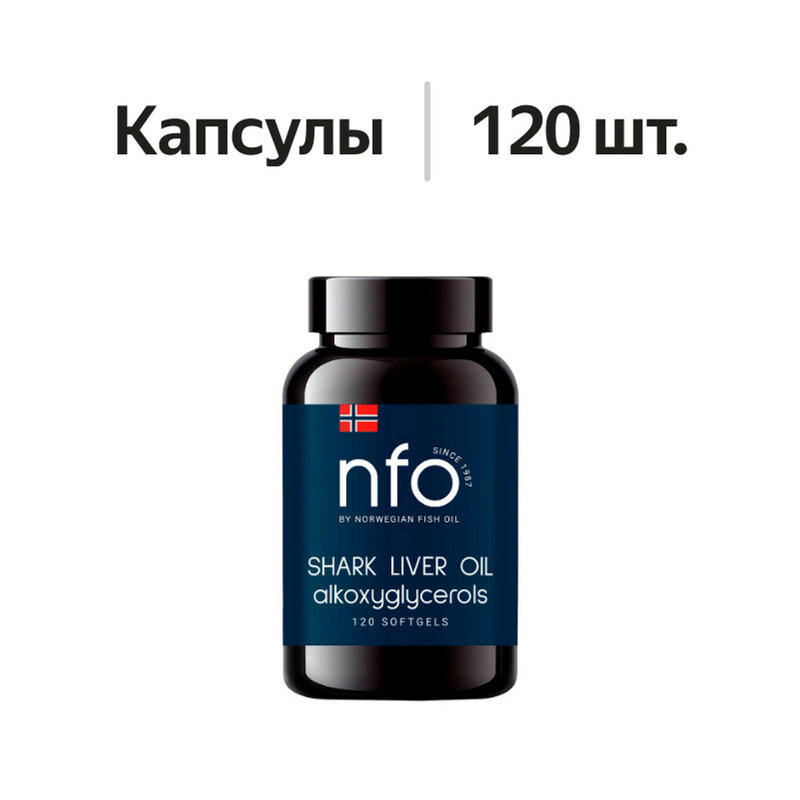 NFO Жир печени акулы ― это уникальный биоактивный комплекс на основе высокоочищенного жира печени акулы с Омега-3, алкоксиглицеридами, скваламином и скваленом в мягких желатиновых капсулах без запаха и вкуса. Жир печени акулы получают из разных видов акул, обитающих в Атлантическом океане на глубине до 1000 метров. Самыми уникальными из них являются португальская акула и черная собачья акула — организмы этих акул богаты веществами, обеспечивающими высокий иммунитет и невосприимчивость ко многим заболеваниям, в том числе к образованию опухолей. Считается, что акулы могут выживать на большой глубине только благодаря своей гигантской печени, в которой содержатся сквален, скваламин и алкоксиглицериды. Скваламин ― природный антибиотик, свойства которого сходны с ампициллином, способен останавливать воспалительные процессы; сквален ― природный антиоксидант, проявляющий противоопухолевые эффекты. Кроме того, жир печени акулы является единственным источником алкоксиглицеридов ― биологически активных веществ, которые способствуют укреплению иммунитета.