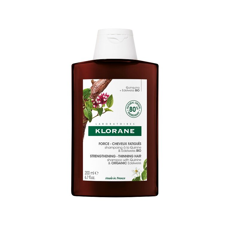 Клоран Шампунь с экстрактами Хинина и Эдельвейса предназначен для укрепления ослабленных, выпадающих волос и улучшения их роста. Бережно очищает волосы Активирует рост волос и возвращает им жизненную силу Укрепляет волосы и делает их более прочными Шампунь придаёт волосам гладкость, блеск и облегчает распутывание волос. Активные компоненты: Экстракт хинина - укрепляет волосы и предотвращает их выпадение, Органический экстракт эдельвейса - активирует рост волос и возвращает волосам жизненную силу, Витамины группы В - питают и укрепляют корни волос, Кофеин - тонизирует кожу головы.