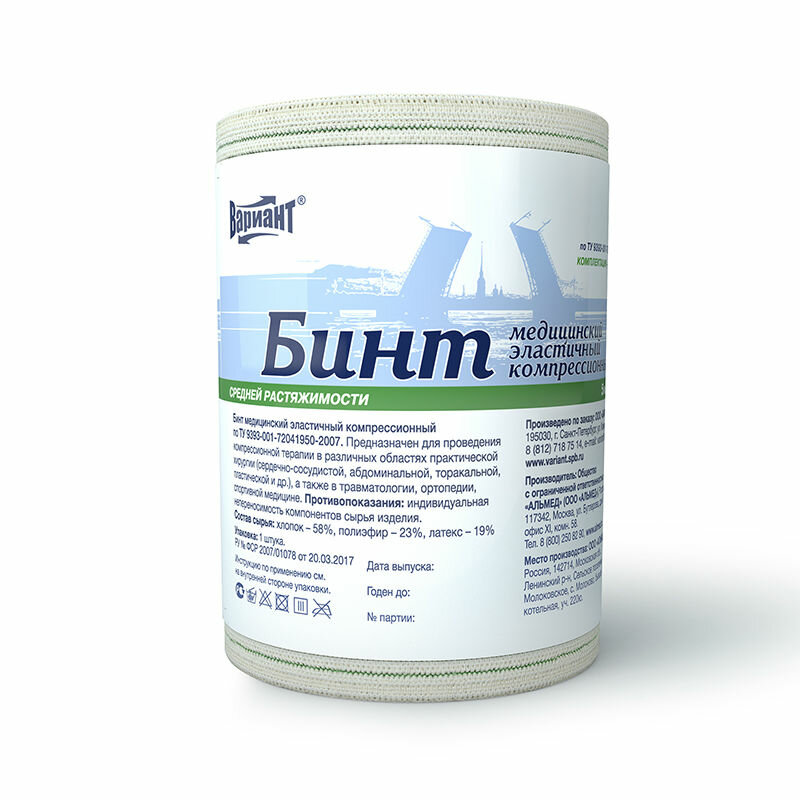 Бинт эластичный компрессионный Вариант средней растяжимости 3 м х 100 мм
