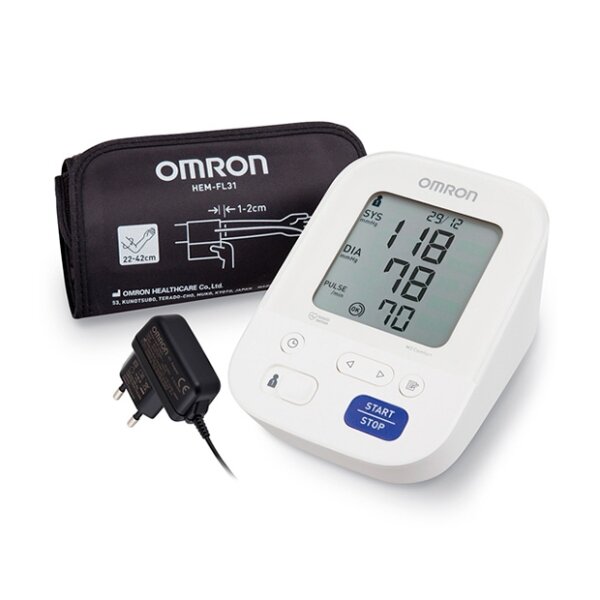 Тонометр автоматический на плечо. Расчет среднего значения 3 измерений за последние 10 мин. Память для 2 пользователей. Обслуживание в собственных сервисных центрах в 75 городах России. Прибор для комфортного измерения артериального давления и пульса. Если тонометр зафиксирует повышенное давление, на экране появится соответствующий значок. Индикатор правильной фиксации манжеты позволит избежать ошибок при ее наложении на плечо, индикатор движения предупредит о движении при измерении. Индикатор аритмии регистрирует изменение сердечного ритма во время измерения. Умная манжета тонометра Intelli Wrap Cuff рассчитана на обхват плеча 22–42 см и подходит большинству пользователей. Прибор совместим с приложением OMRON connect, которое позволяет хранить результаты измерений в смартфоне или планшете и контролировать их изменение. Память на 2 пользователей по 60 измерений на каждого плюс гостевой режим. Работает от 4 элементов питания типа АА или от сети (батарейки и адаптер в комплекте).