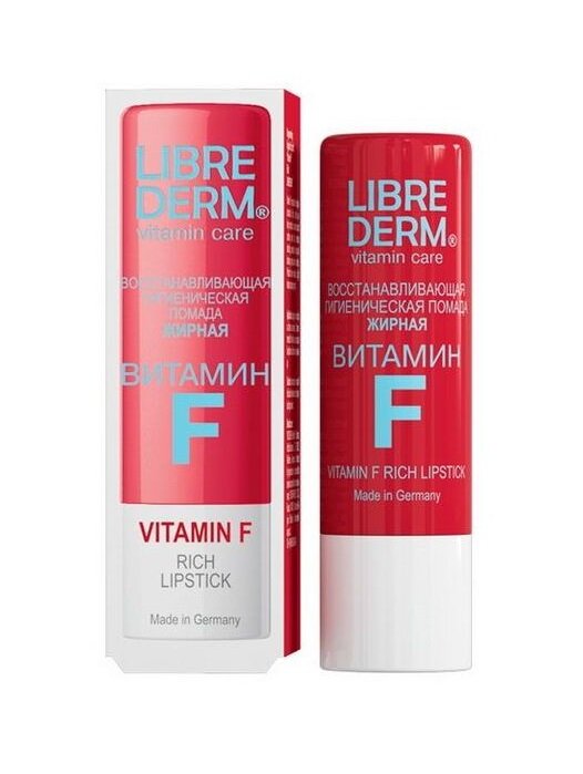 Восстанавливающая гигиеническая помада Витамин F жирная активно смягчает, питает и успокаивает кожу губ, предотвращает образование сухости и трещин, восстанавливает эластичность, придавая коже здоровый вид. Защищает от обветривания.