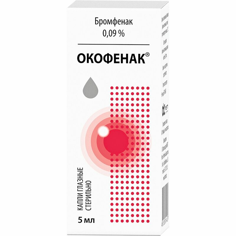 НПВП. Противовоспалительное действие бромфенака реализуется за счет блокирования синтеза простагландинов при ингибировании ЦОГ 1 и 2. В исследованиях in vitro бромфенак ингибировал синтез простагландинов в цилиарном теле кролика. IC50 для бромфенака (1.1 мкмоль) была ниже, чем для индометацина (4.2 мкмоль) и пранопрофена (11.9 мкмоль). В экспериментальной модели увеита у кроликов бромфенак в концентрациях 0.02%, 0.05%, 0.1% и 0.2% ингибировал практически все симптомы глазного воспаления.