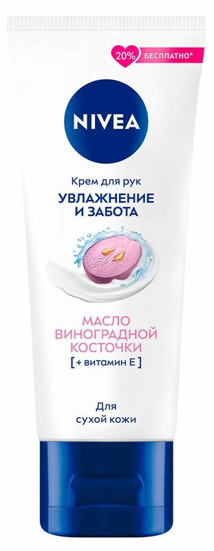 Нежная кожа рук регулярно подвергается воздействию негативных факторов, таких как частое применение антисептиков, холодный ветер, дождь, другие воздействия окружающей среды. Все это может привести к возникновению ощущения сухости, стянутости и дискомфорта. Прощайтесь с сухостью кожи! Попробуйте крем для рук «Увлажнение и забота» от Nivea с маслом виноградной косточки и витамином Е. Крем глубоко питает и увлажняет кожу, придавая рукам ухоженный вид. Крем для рук «Увлажнение и забота» от Nivea: Содержит в составе масло виноградной косточки, витамин Е и Hydramine; Для сухой кожи рук; Интенсивно увлажняет; Быстро впитывается.