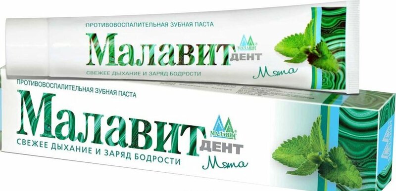 Вода очищенная, Малавит, сорбитол, диоксид кремния, ПЭГ-400, натрий карбоксиметилцеллюлоза, лаурилсульфат натрия, диоксид титана, ксантановая смола, экстракт мяты перечной, ментол, отдушка, бензоат натрия, сахаринат натрия, метилпарабен, пропилпарабен.