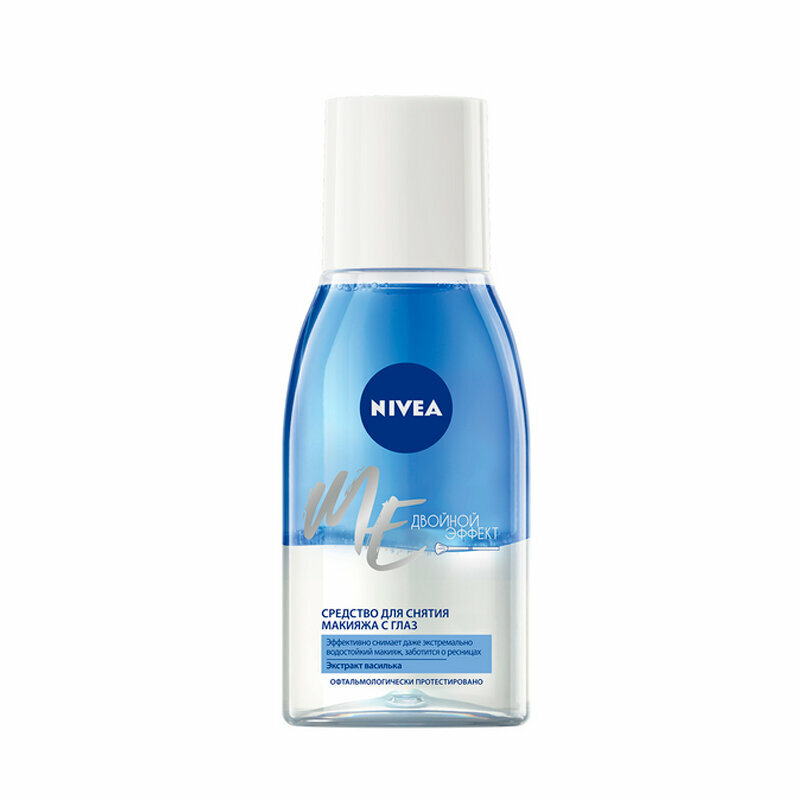 Средство для удаления макияжа с глаз двойной эффект от Nivea эффективно удаляет даже водостойкий макияж, и, благодаря двухфазной формуле с экстрактом василька, защищает от повреждения ресницы. Оно идеально и бережно очищает кожу вокруг глаз и не оставляет ощущения жирности и липкости. Средство для удаления макияжа с глаз двойной эффект от Nivea подходит даже для чувствительной кожи и не щиплет глаза при использовании. Подходит при использовании контактных линз.