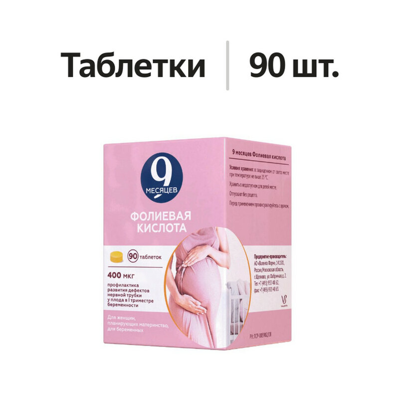 9 месяцев Фолиевая кислота таблетки 400 мкг 90 шт.