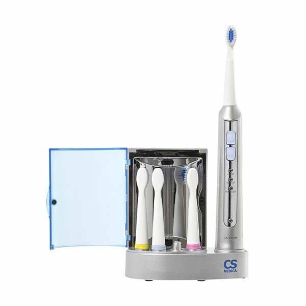 Электрическая звуковая зубная щетка с зарядным устройством и ультрафиолетовым дезинфектором CS-233-uv представляет собой прибор для ухода за полостью рта. Эта многофункциональная щетка (3 режима работы, таймер, автоматическое отключение) имеет дополнительную особенность – УФ-дезинфектор для насадок. Для обеззараживания щетины необходимо разместить насадки в специальный отсек и закрыть крышку. После этого автоматически включается УФ-дезинфектор на 6-8 минут. За это время уничтожаются до 99% бактерий с щетины зубной щетки.
