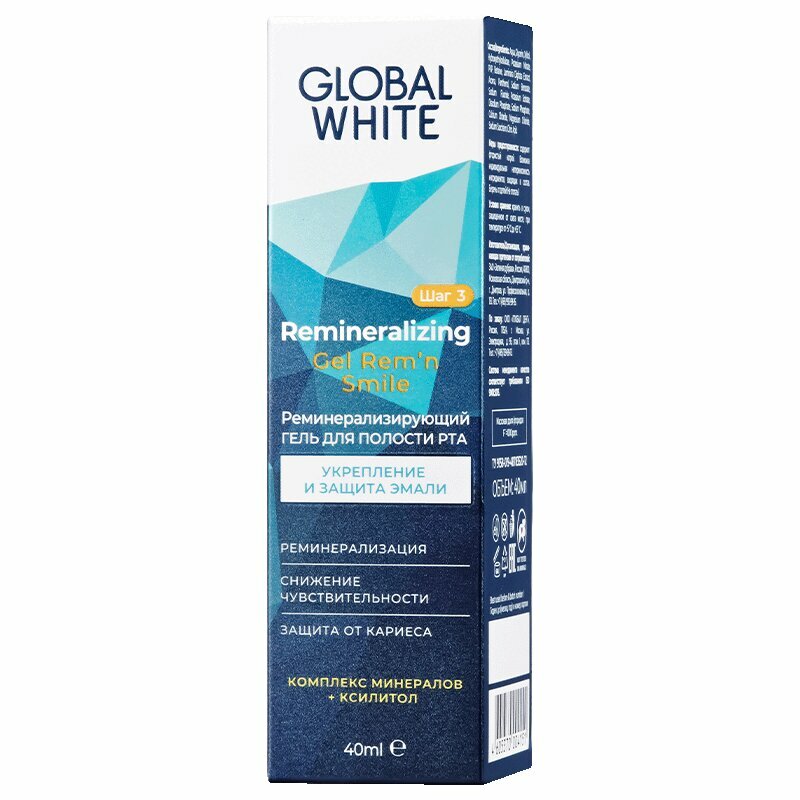 Реминерализирующий гель снижает риск кариеса на 70%, уменьшает чувствительность зубов, а также продлевает эффект отбеливания. Содержит фтор и комплекс минералов (кальций, магний, фосфаты), которые укрепляют зубную эмаль и восполняют баланс минералов в тканях зуба.