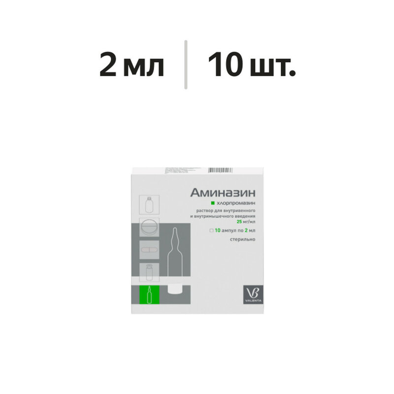 В 1 мл раствора содержится: активное вещество: хлорпромазина гидрохлорид в пересчете на 100% вещество (аминазин) - 25,0 мг; вспомогательные вещества: нагрия сульфит безводный - 1,0 мг, натрия дисульфит - 1,0 мг, аскорбиновая кислота - 2,0 мг, натрия хлорид - 6,0 мг, вода для инъекций - до 1,0 мл.