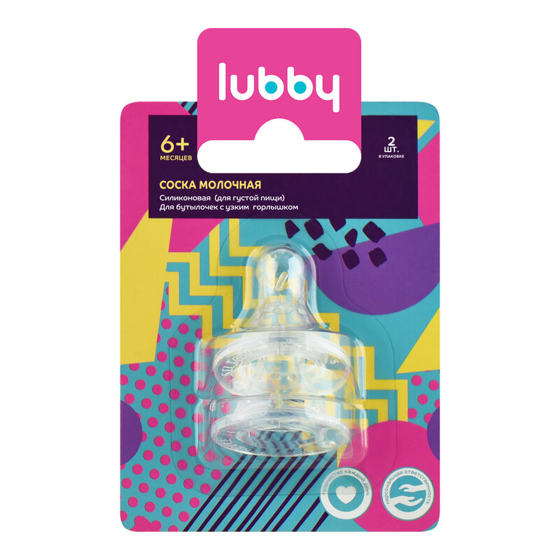 Соска молочная Lubby для густых жидкостей силиконовая от 6 месяцев 2 шт.