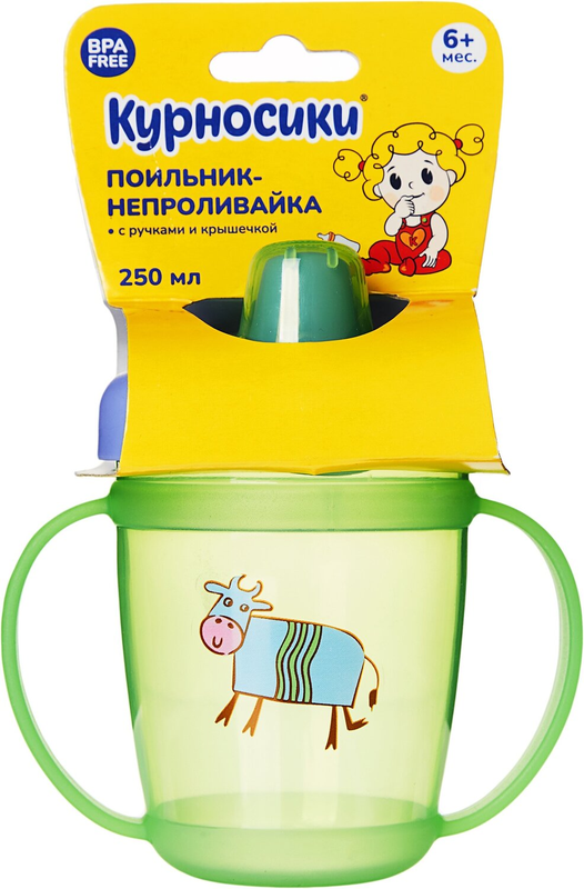 Курносики Поильник-непроливайка с ручками и крышечкой, 250 мл Поильник-непроливайка «Курносики» с удобными ручками, с силиконовым клапаном и удобной крышечкой, которая предохраняет носик от загрязнения. Такой поильник можно брать на прогулку или в путешествие. Не стерилизуйте и не разогревайте в микроволновой печи питание в поильнике. Температура жидкости, предлагаемой малышу, не должна превышать 40 °С. Не использовать для газированных напитков.