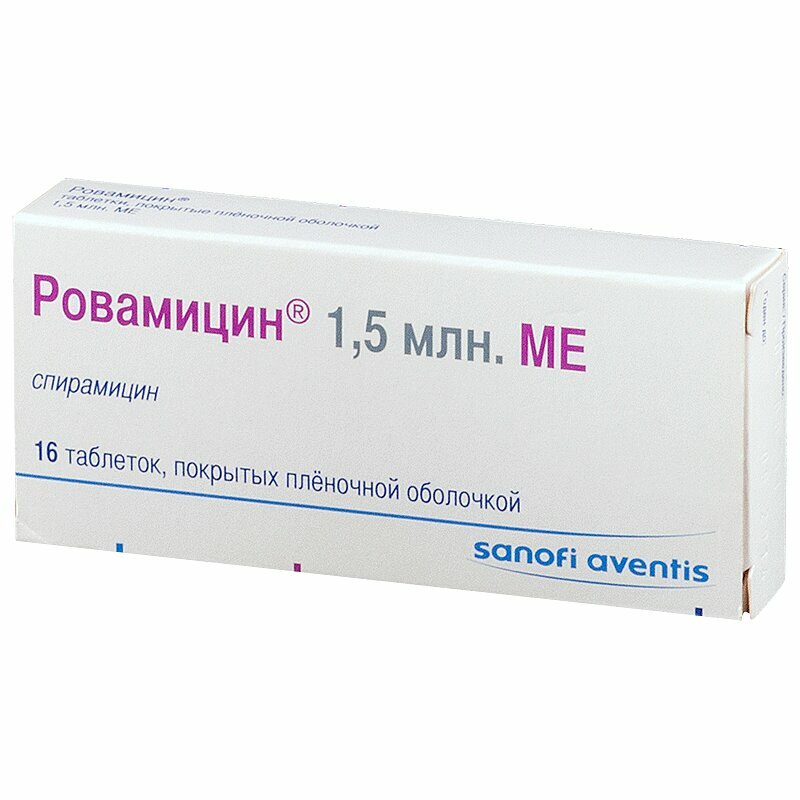 Антибиотик из группы макролидов. Механизм антибактериального действия обусловлен торможением синтеза белка в микробной клетке за счет связывания с 50S-субъединицей рибосомы. Чувствительные микроорганизмы (МПК<1 мг/л): грамположительные аэробы - Bacillus cereus, Corynebacterium diphtheriae, Enterococcus spp., Rhodococcus equi, Staphylococcus spp. (метициллин-чувствительные и метициллин-резистентные штаммы), Streptococcus B, неклассифицированный стрептококк, Streptococcus pneumoniae, Streptococcus pyogenes; грамотрицательные аэробы - Bordetella pertussis, Branhamella catarrhalis, Campylobacter spp., Legionella spp., Moraxella spp.; анаэробы - Actinomyces spp., Bacteroides spp., Eubacterium spp., Mobiluncus spp., Peptostreptococcus spp., Porphyromonas spp., Prevotella spp., Propionibacterium acnes; разные - Borrelia burgdorferi, Chlamydia spp., Coxiella spp., Leptospira spp., Mycoplasma pneumoniae, Treponema pallidum, Toxoplasma gondii. Умеренно чувствительные микроорганизмы (антибиотик умеренно активен in vitro при концентрациях антибиотика в очаге воспаления ≥ 1 мг/л, но < 4 мг/л): грамотрицательные аэробы - Neisseria gonorrhoeae; аэробы - Clostridium perfringens; разные - Ureaplasma urealyticum. Устойчивые микроорганизмы (МПК>4 мг/л; по крайней мере 50% штаммов являются устойчивыми): грамположительные аэробы - Corynebacterium jekeium, Nocardia asteroides; грамотрицательные аэробы - Acinetobacter spp., Enterobacter spp., Haemophilus spp., Pseudomonas spp.; анаэробы - Fusobacterium spp.; разные - Mycoplasma hominis.Всасывание Абсорбция спирамицина происходит быстро, но неполно, с большой вариабельностью (от 10% до 60%). После приема Ровамицина внутрь в дозе 6 млн.МЕ Cmax спирамицина в плазме составляет около 3.3 мкг/мл. Прием пищи не влияет на абсорбцию. Распределение Связывание с белками плазмы низкое (приблизительно 10%). Vd примерно 383 л. Препарат хорошо проникает в слюну и ткани (концентрация в легких составляет 20-60 мкг/г, в миндалинах - 20-80 мкг/г, в инфицированных пазухах - 75-110 мкг/г, в костях - 5-100 мкг/г). Спустя 10 дней после окончания лечения концентрация спирамицина в селезенке, печени, почках составляет 5-7 мкг/г. Спирамицин проникает и накапливается в фагоцитах (нейтрофилы, моноциты и перитонеальные и альвеолярные макрофаги). У человека концентрации препарата внутри фагоцитов являются достаточно высокими. Этим объясняется эффективность спирамицина в отношении внутриклеточных бактерий. Проникает через плацентарный барьер (концентрация в крови плода составляет примерно 50% от концентрации в сыворотке крови матери). Концентрации в ткани плаценты в 5 раз выше, чем соответствующие концентрации в сыворотке крови. Выделяется с грудным молоком. Спирамицин не проникает в спинномозговую жидкость. Метаболизм и выведение Спирамицин метаболизируется в печени с образованием активных метаболитов с неустановленной химической структурой. T1/2 из плазмы составляет приблизительно 8 ч. Выводится главным образом с желчью (концентрация в 15-40 раз выше, чем в сыворотке). Почечная экскреция составляет около 10% от введенной дозы. Количество препарата, выделяющееся через кишечник (с калом), очень незначительно.