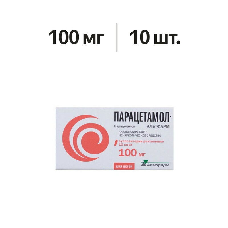 1 супп. парацетамол 100 мг. Вспомогательные вещества: витепсол Н15.