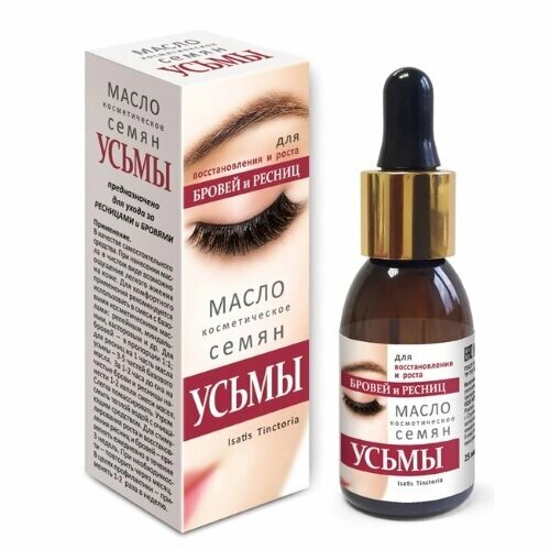 Масло семян усьмы - уникальное косметическое природное средство, способствует оздоровлению бровей и ресниц. Масло активирует волосяные луковицы, стимулирует рост волосков, укрепляет структуру, возвращает блеск. Питает и защищает от воздействия солнца, мороза, ветра. Брови становятся гуще, четче линия бровей. Ресницы толще и длиннее, подчеркивают глубину взгляда.