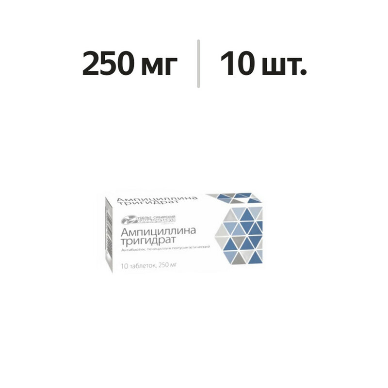 Ампициллина тригидрат 309.51 мг, что соответствует содержанию ампициллина 250 мг. Вспомогательные вещества: крахмал картофельный - 60.99 мг, кальция стеарат - 3.8 мг, тальк - 5.7 мг.