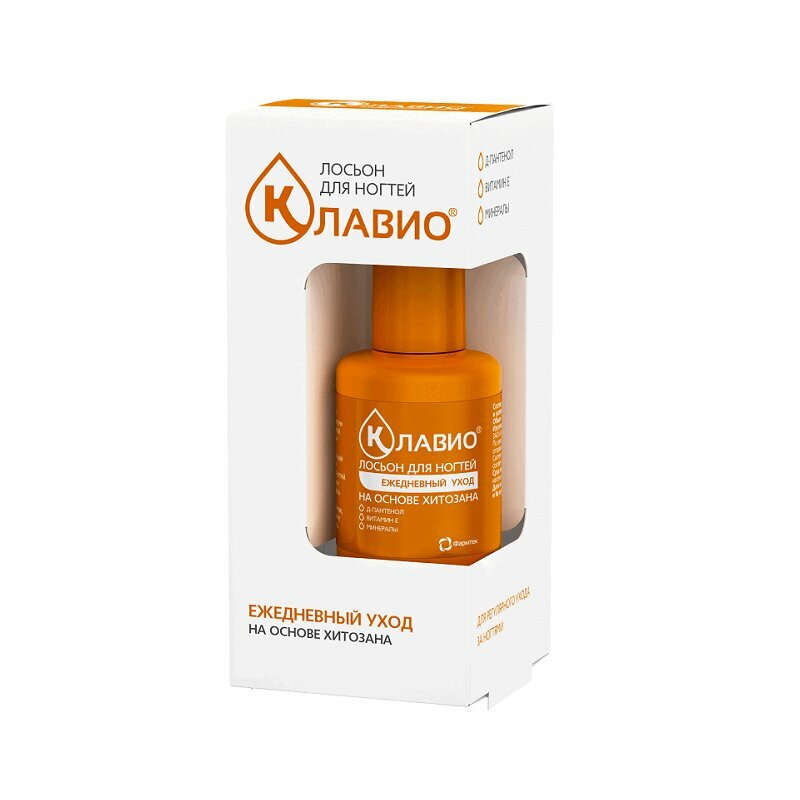 Краткое описание Лосьон для ногтей -Ежедневный уход- КЛАВИО специально разработан врачами-дерматологами для поддержания здоровья ногтей. Причины и признаки поврежденных ногтей: Проблема повреждения ногтей чаще возникает на фоне врожденной хрупкости, которая встречается примерно у 25% населения. Внешними причинами повреждения являются частое и длительное воздействие воды и средств бытовой химии (моющих средств, растворителей и т.п.). Также к повреждению ногтей может приводить избыточное использование средств ногтевого сервиса - лаков, растворителей, клеев и др. В результате ногти истончаются, расслаиваются, тускнеют, легко ломаются, теряют гладкость, эластичность и блеск, пересыхают. Такие ногти требуют восстановления и защиты.
