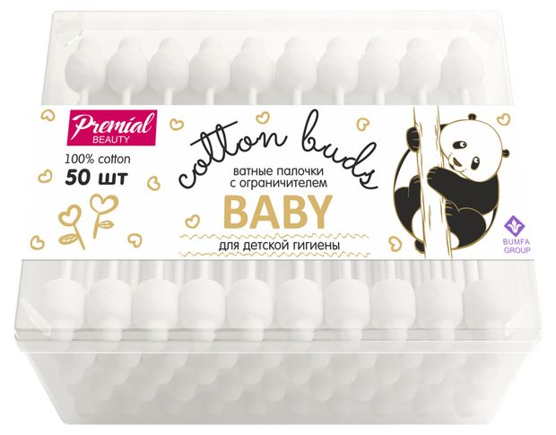 Палочки ватные Premial для детской гигиены 50 шт.