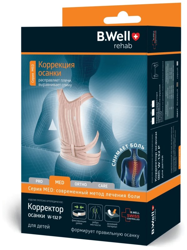 Корректор осанки, арт. W-132P, предназначен для формирования правильного мышечно-суставного стереотипа осанки: Удерживает позвоночник в физиологичном положении. Нормализует тонус мышц спины. Снимает нагрузку с переднего опорного комплекса грудных позвонков. Уменьшает болевой синдром. Корректор осанки оказывает дисциплинирующее действие, не вызывает мышечную гипотрофию. Пружинные вставки нормализуют тонус мышц. Корректор незаметен под обычной одеждой, выполнен из гипоаллергенного воздухопроницаемого материала.