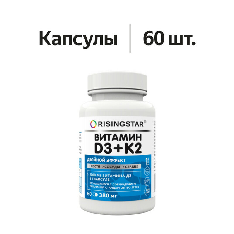 Витамины К2 и Д3 способствуют здоровью костей, сосудов и сердца, а также крепкому иммунитету. Этот комплекс особенно важен: - для людей с сердечно-сосудистыми заболеваниями - при заболеваниях костей - при снижении иммунитета - для восстановления после перенесенных вирусных заболеваний.