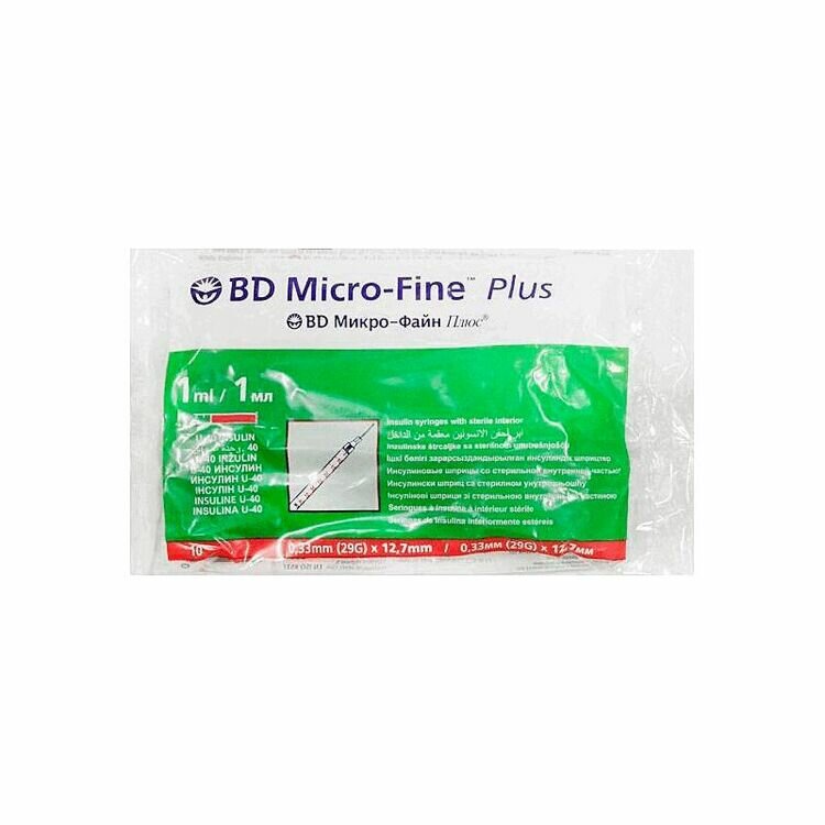 Шприц инсулиновый BD Micro-Fine Plus U-40 29G 0.33 х 12.7 мм 1 мл 10 шт.