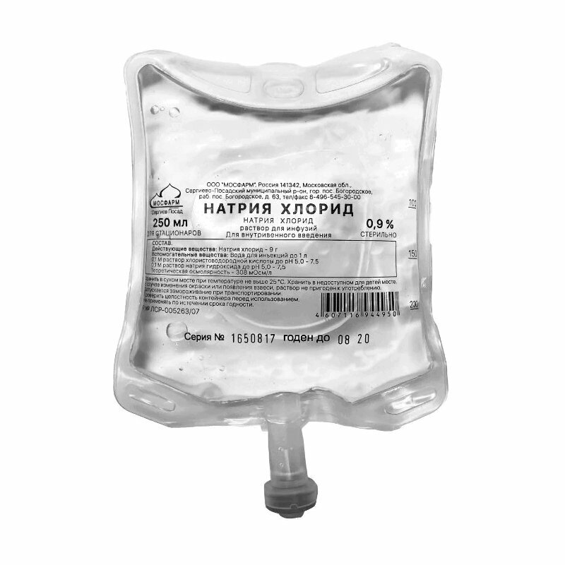 Натрия хлорид раствор для инфузий 0.9% 250 мл 1 шт.