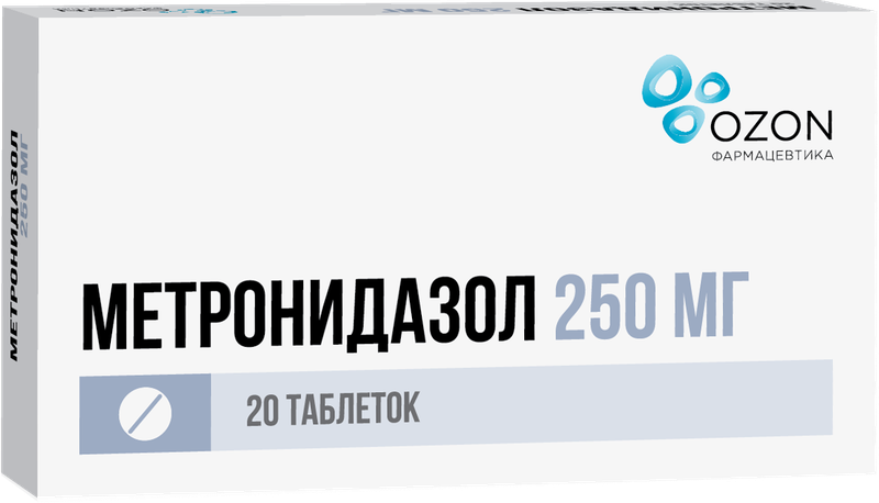 Действующее вещество: метронидазол – 250 мг. Вспомогательные вещества: крахмал кукурузный – 34.7 мг, повидон-К17 - 15 мг, магния стеарат – 0.3 мг.