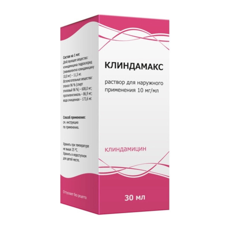 Клиндамицин - антибиотик группы линкозамидов, активен в отношении всех штаммов Propionibacterium acnes, минимальная подавляющая концентрация (МПК) - 0,4 мкг/мл.