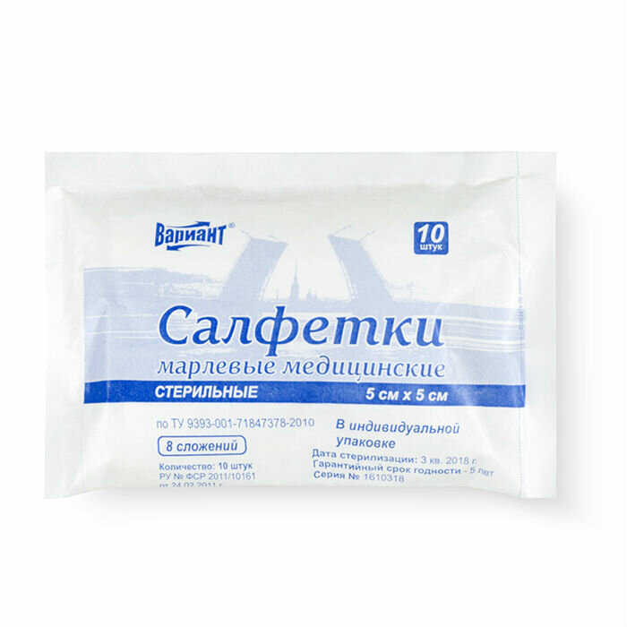 Вариант Евро Премиум салфетки стерильные 5 см х 5 см 8 сложений 10 шт.