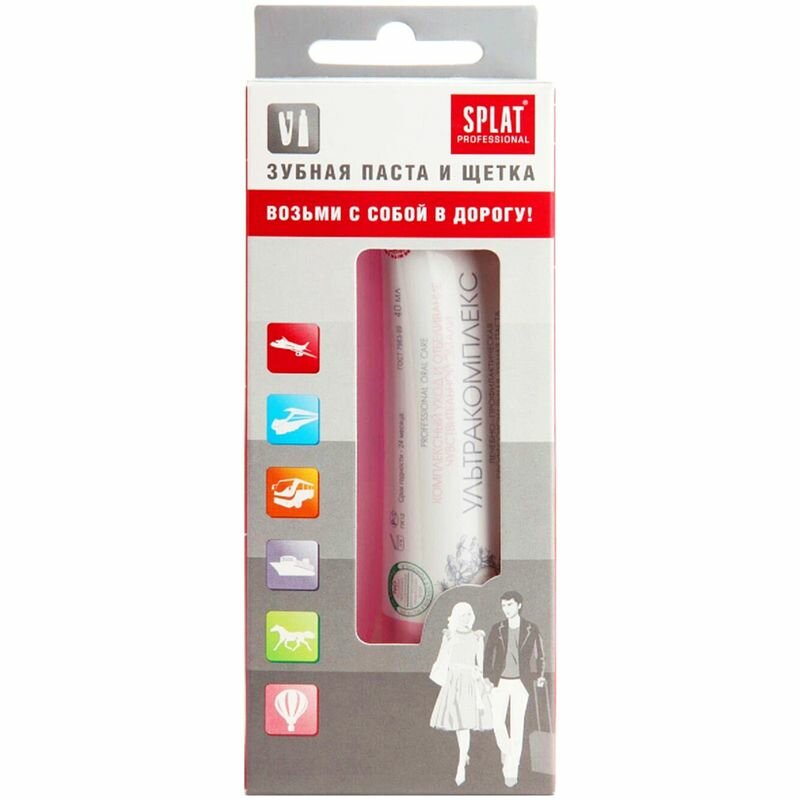 Мультиактивная зубная паста бережно заботится о белизне чувствительных зубов и здоровье дёсен, прекрасно освежает дыхание. Щетина дорожной щетки самой популярной средней жесткости с утонченными кончиками для максимально эффективного и бережного очищения межзубных промежутков.