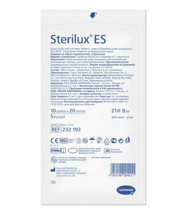 Салфетки стерильные Hartmann Sterilux ES 10 х 20 см 5 шт.